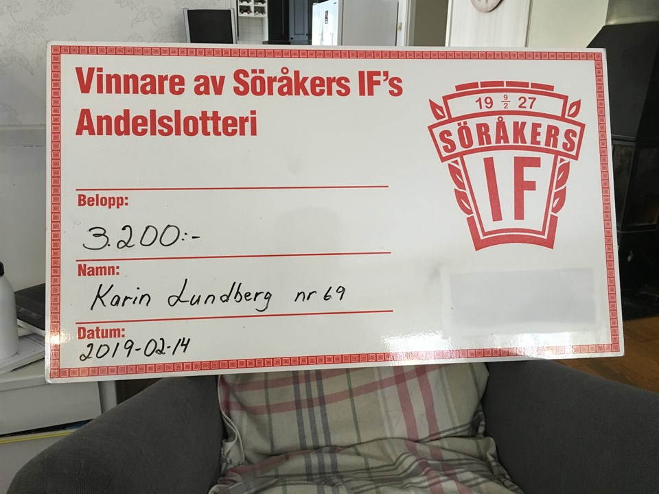 Vi säger grattis till Karin Lundberg som med nummer 69 vann 3200kr. Finns nummer kvar att prenumerera på ta kontakt med Elisabeth Andersson så hjälper hon er. Söråkers IF 15 feb 2019 0kommentarer