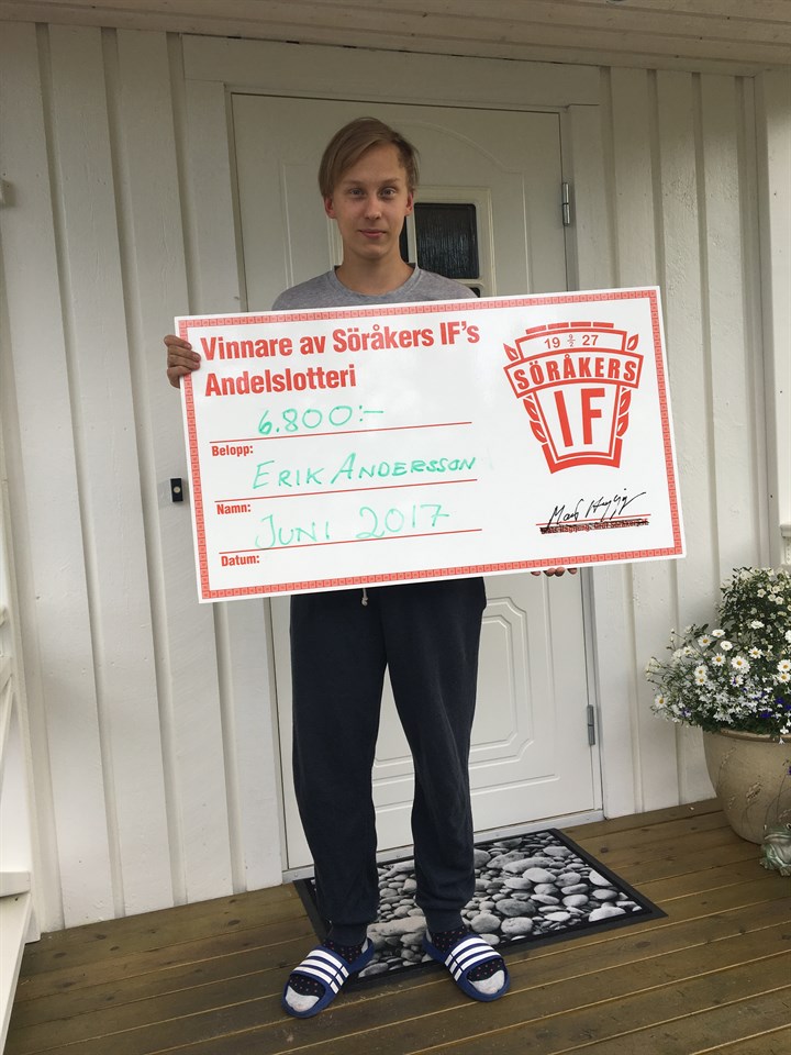Grattis Erik Andersson månadsvinnare i juni som drygade ut semesterkassan. Söråkers IF 22 jul 2017 0kommentarer