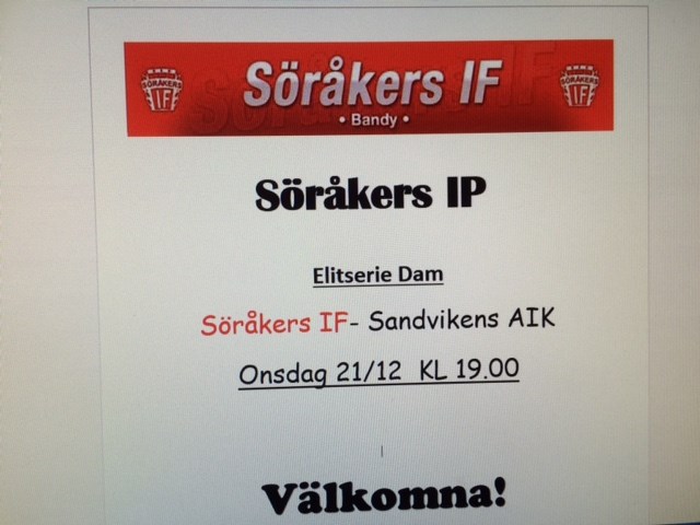 • Söråkers IF - Sandvikens AIK onsd 21/12 kl 19.00