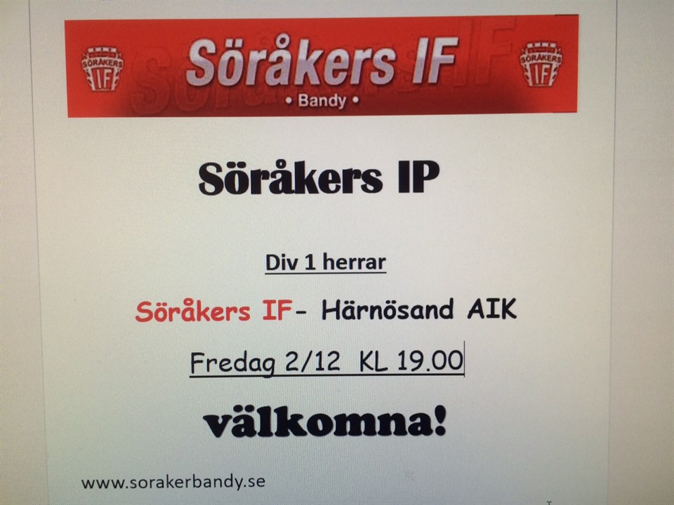 • Söråkers IF - Härnösands AIK 2/12 kl 19.00 IP!