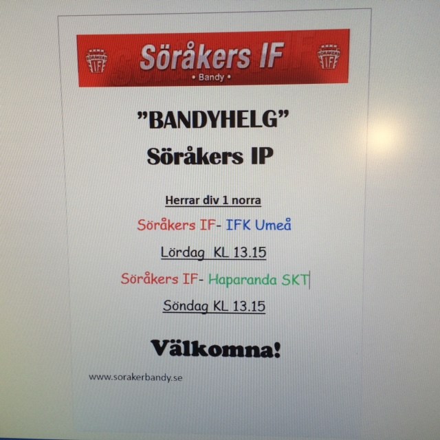 Lördag 9/1 kl 13:15 Div.1 Norra Herrar - Umeå Söndag 10/1 kl. 13:15 Div.1 Norra Herrar - Haparanda Söråkers IF 4 jan 2016 0kommentarer