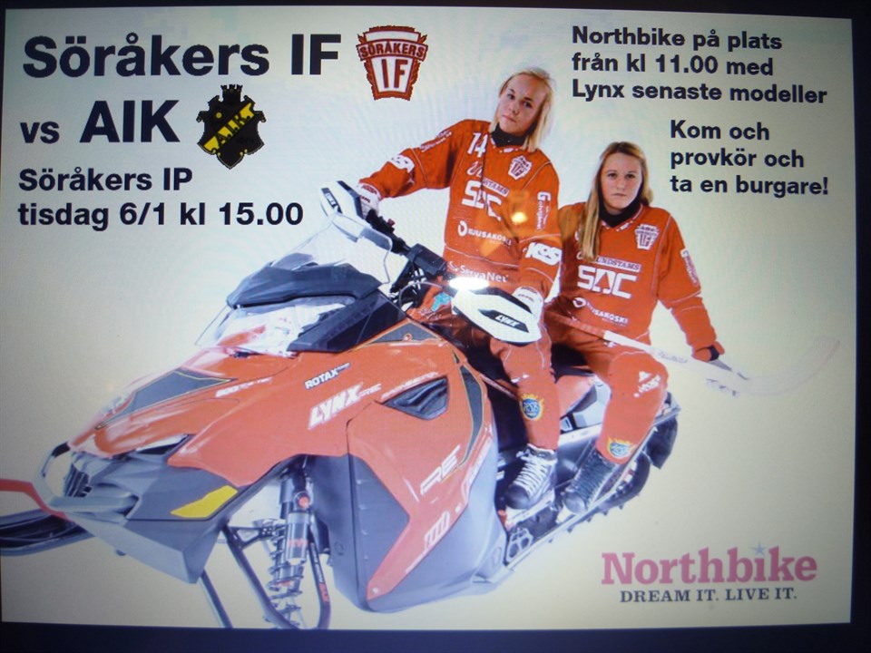 Trettondagen 6/1 har vi dambesök från Solna i form av AIK. Hoppas att tjejerna kan upprepa bravaden som dom gjorde när dom besegrade Sandviken med 7-6 på bortais den 3/1. Då kan det bli en mycket sevärd och spännande match. Därför hoppas vi att du kommer och stöttar våra tjejer. Uppvisande av matchbiljett från Timrå-Björklöven funkar som inträdesbiljett till denna match. Söråkers IF 2 jan 2015 0kommentarer