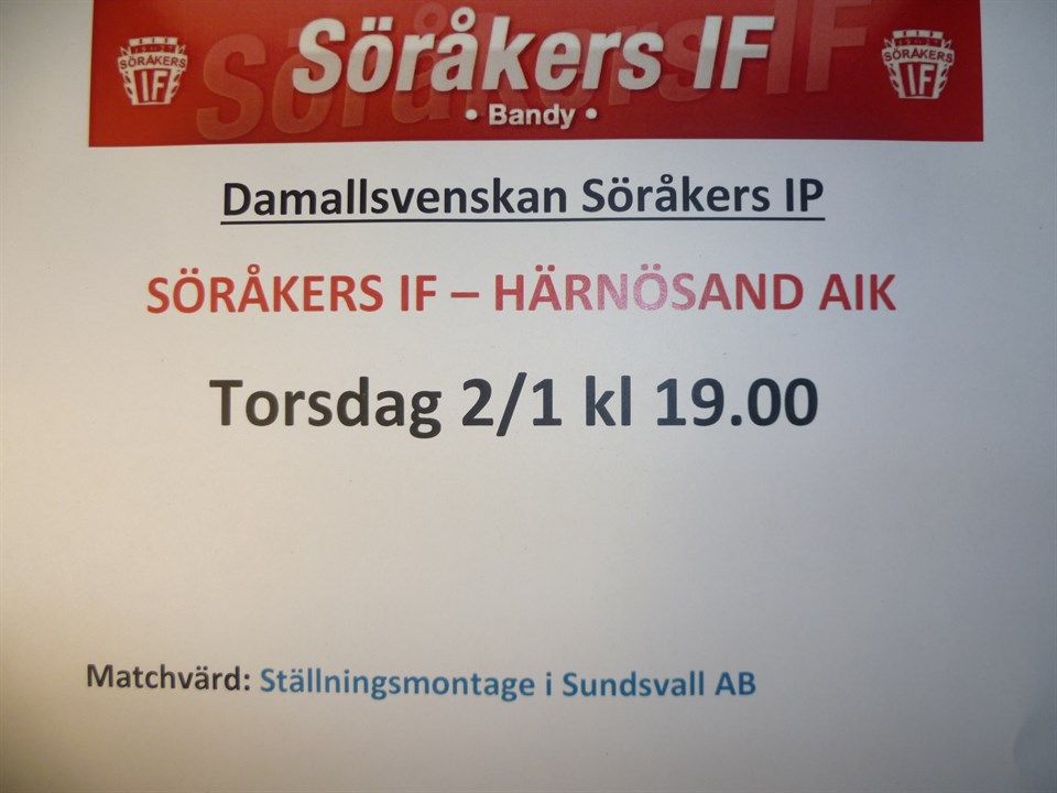 Så var det dags för damderby mot Härnösand AIK, torsdag kl 19.00 på Söråkers IP brinner det igång !! Välkomna !! Söråkers IF 29 dec 2013 0kommentarer